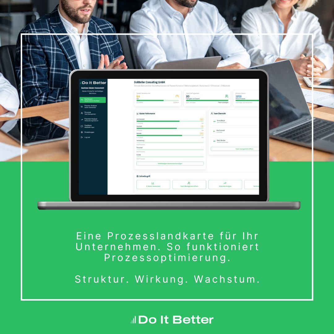 - Begleitung: Nicht noch eine Software. Unsere Berater pflegen und nutzen die Do It Better Prozess App. So stellen wir eine klare Umsetzung sicher